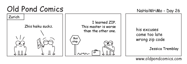 Master Kawazu and his apprentice Kaeru write one haiku a day for a month during the second National Haiku Writing Month (NaHaiWriMo) from February 1-29, 2012.